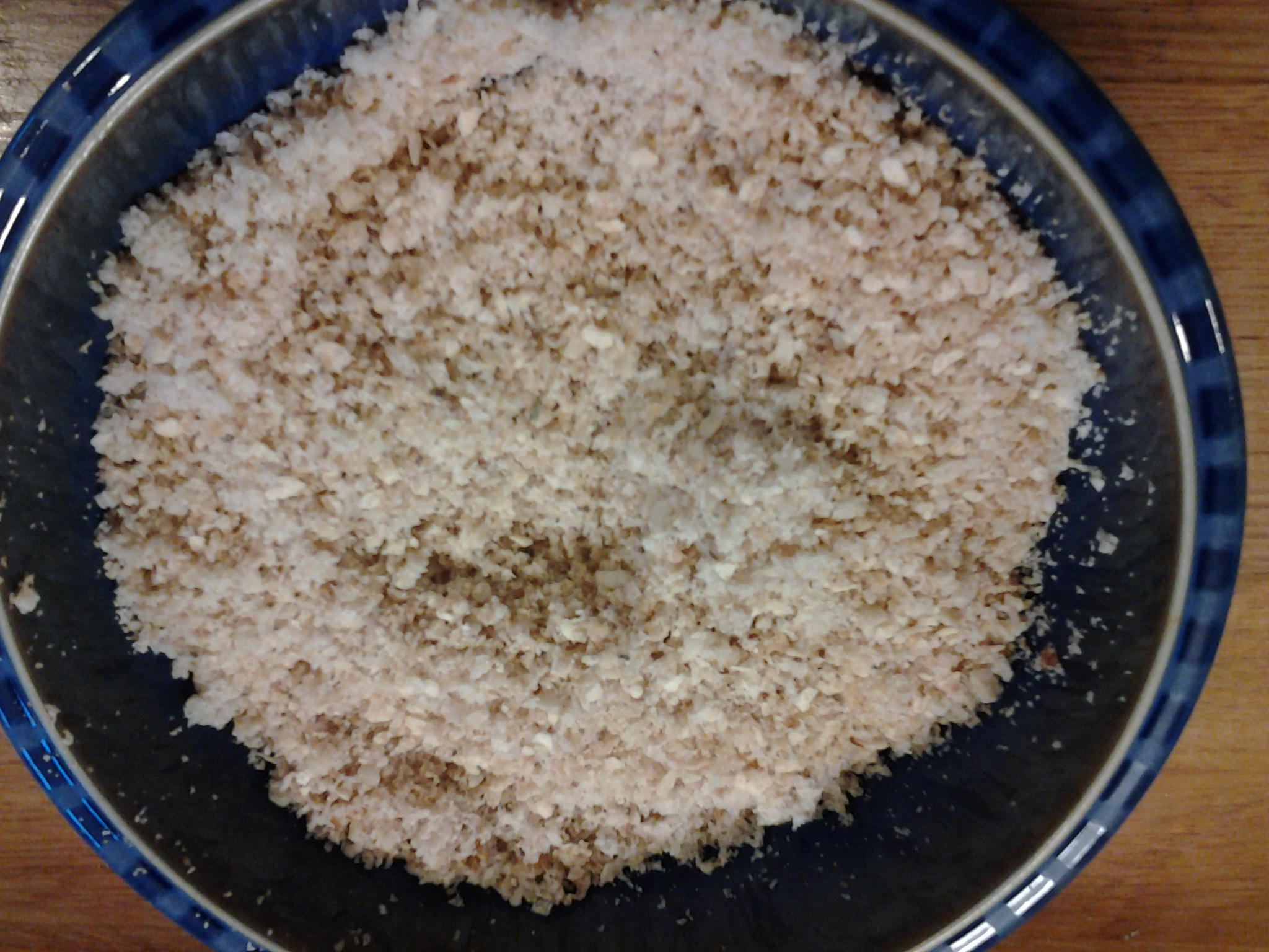 - Now blend the 4 slices of free-from bread until you have breadcrumbs. You can add your choice of herbs and seasoning – I chose sage. Put the breadcrumb mixture into a bowl or onto a small plate