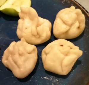 - Once the dough has increased in size, you will need to start to prepare the buns. Take a pinch of the dough and roll out into a rough circle using a floured surface. I found it quite hard to fill and fold the buns if the rounds are too small, so it’s worth practising until you’ve got a size that you’re comfortable working with.