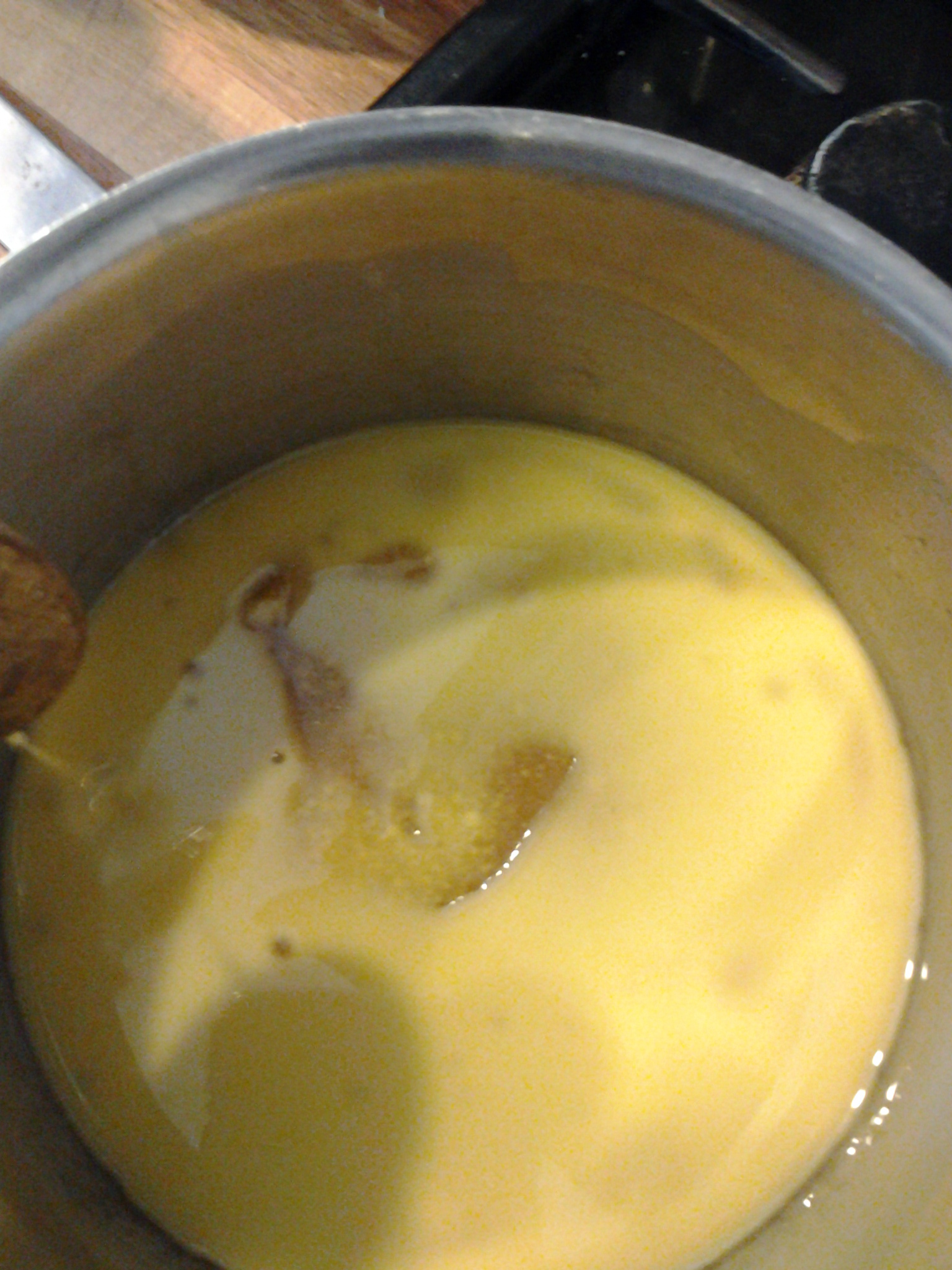 2. Melt the margarine, caster sugar and golden syrup gently in a pan over a medium heat. Once melted, remove from the heat and cool slightly. 20140124_102942