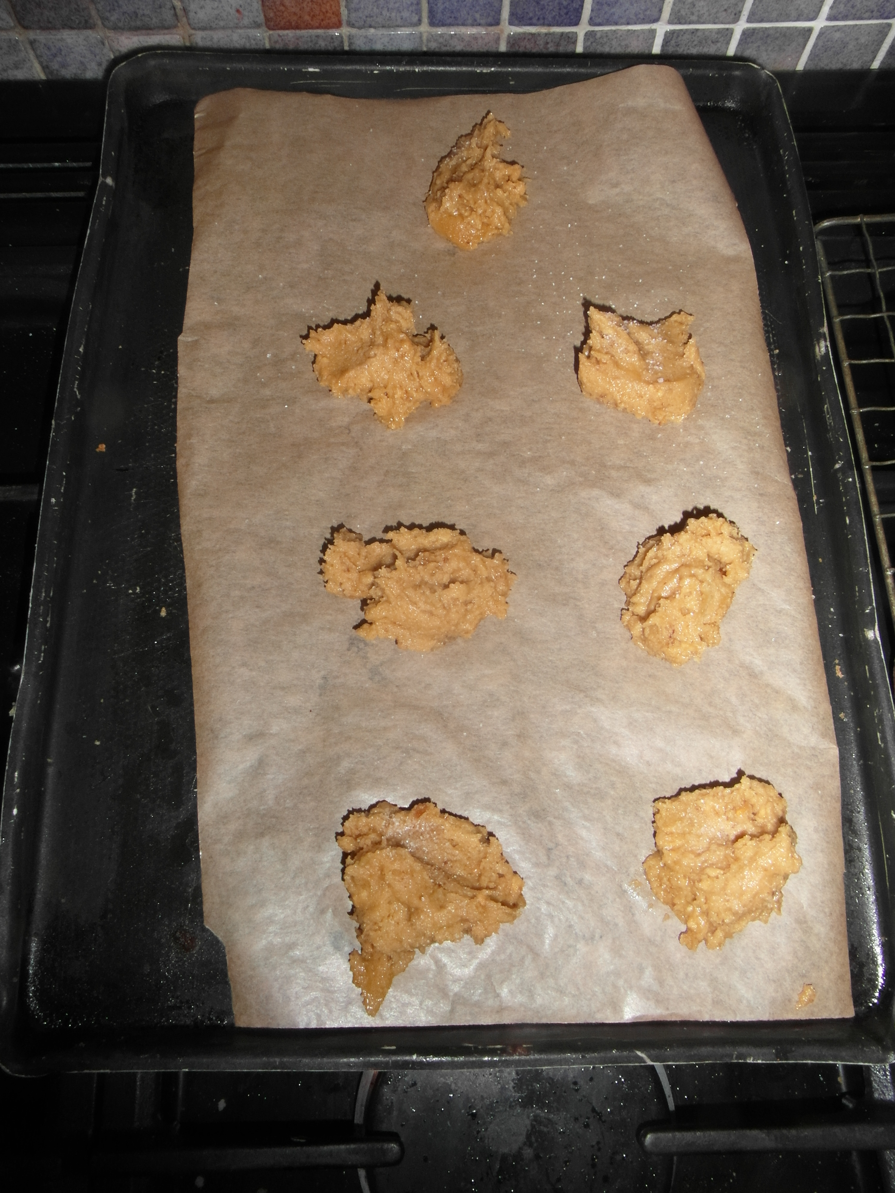 - Portion out your dough, roll each into a ball into the sugar and place on baking trays, allowing room for the cookies to spread out while baking