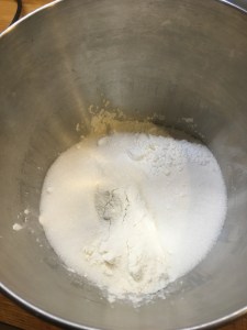 - Sift the dry ingredients including the lemon zest into a large mixing bowl and stir well
