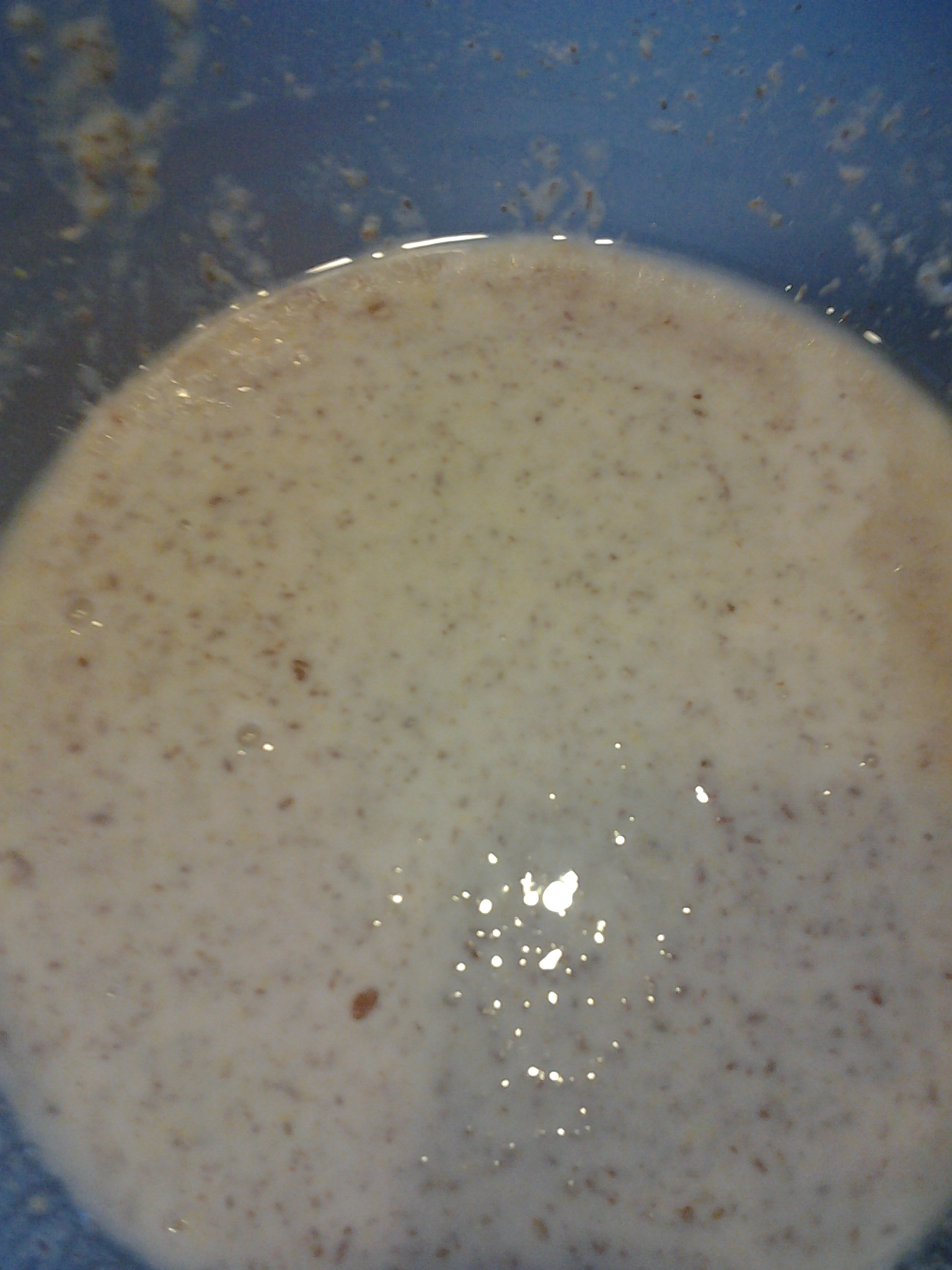 - Make a well in the centre of the flour and pour in the ground flaxseed meal mix into it.