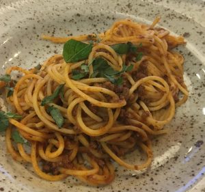Their service from the beginning of our meal to the very end was absolutely impeccable. The manager arrived at our table with a form to complete, but this was simply to record our contact details and what the allergies were so that every meal coming out of the kitchen could be recorded and checked before it was brought to the table. For the first time in an awfully long time, G and M were able to have a 3-course meal and every bit of it was absolutely delicious. G started with garlic bread, then enjoyed an American pizza and finished with a bowl of vegan vanilla ice cream; whilst M opted for New Orleans Shrimp, Spaghetti Bolognese and apple crumble with ice cream.