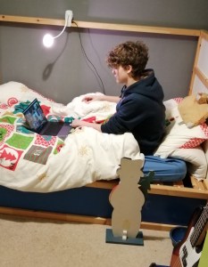 With the second lockdown coming into play before they managed to get back to actual lessons, G and M were worried that it might be weeks until they could get back to what they love, but the local Principal had different ideas – and so Stagecoach on Zoom was launched. Every week they log on to join the rest of their stage for their usual 3 hours of Stagecoach and our sitting room is cleared, with the furniture pushed to the sides to make room for their dance and drama. It’s been something of a learning curve for everyone as they learn to navigate the finer details of Zoom sessions, but it’s also been a huge success.